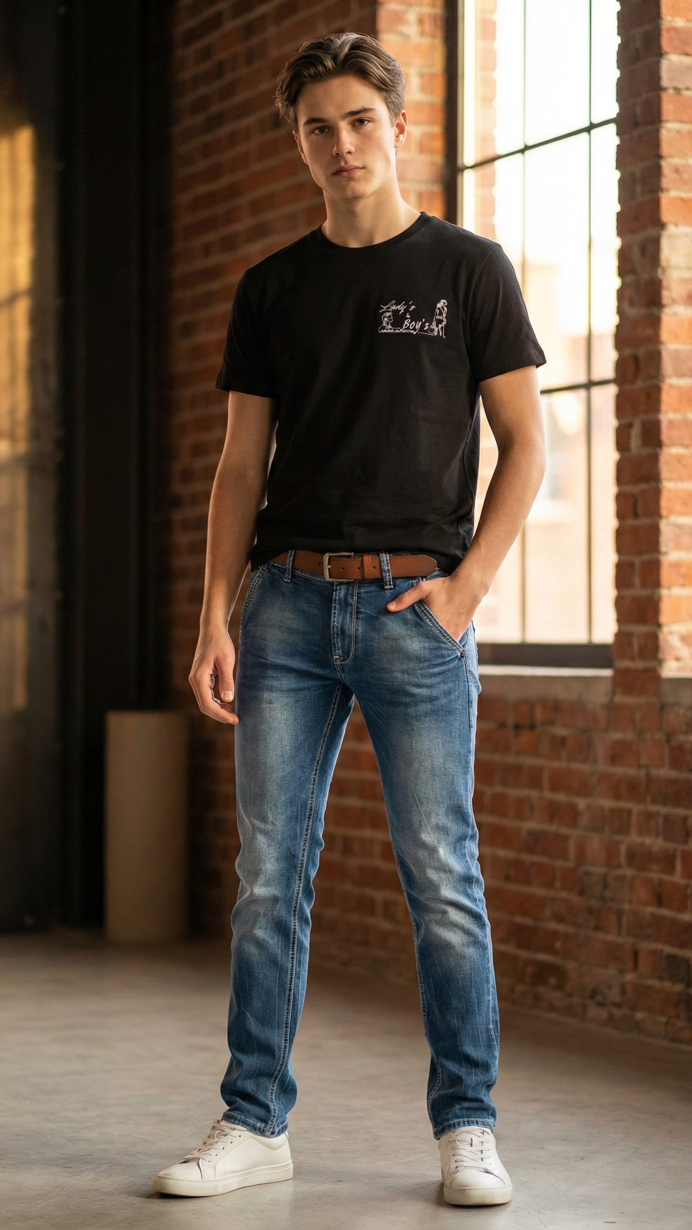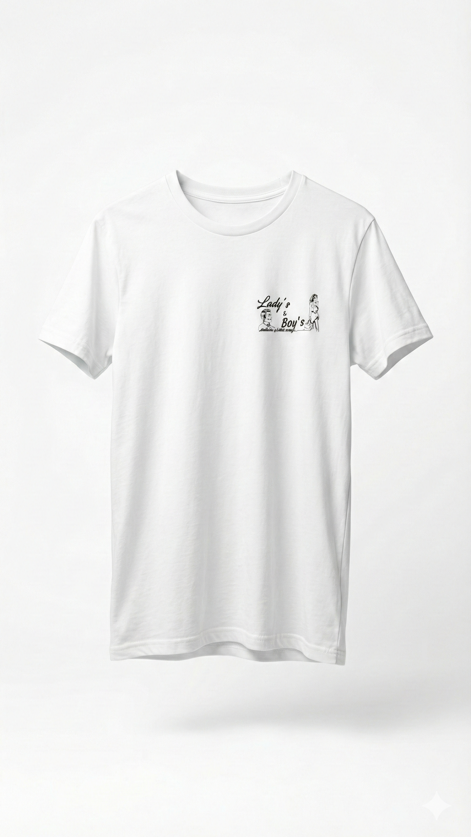 Porta sempre con te lo stile di Lady's & Boy's. Questa T-shirt nera girocollo è il capo essenziale che non può mancare nel tuo guardaroba. Realizzata in morbido cotone per garantire il massimo comfort, presenta l'iconico logo del nostro store stampato sul lato cuore a contrasto. Un design minimal e versatile, perfetto per essere abbinato a un paio di jeans per un look casual o sotto una giacca per un tocco più urbano. Indossa la nostra firma.